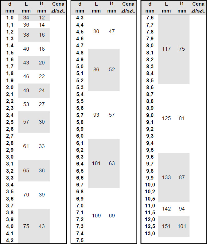 – dostępne w optymalnej palecie rozmiarów od 1,0 do 13,0 mm